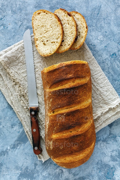 Нарезка свежевыпеченного хлеба на кислом тесто