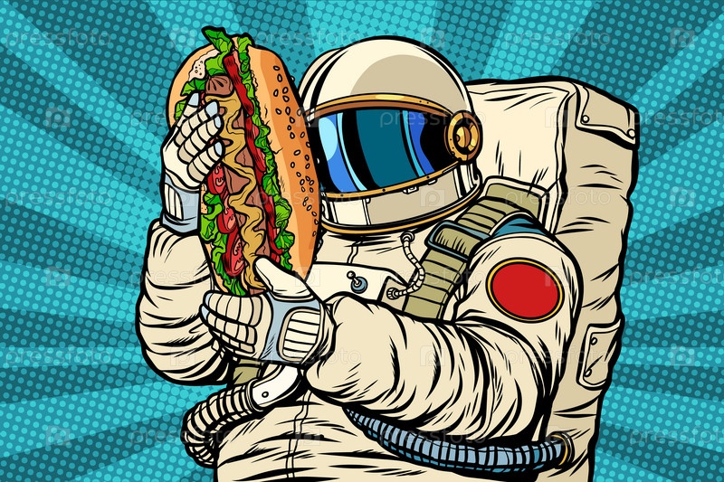 Астронавт с хот-догом, уличной быстрой едой