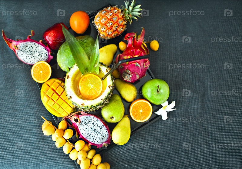 Экзотические фрукты на подносе