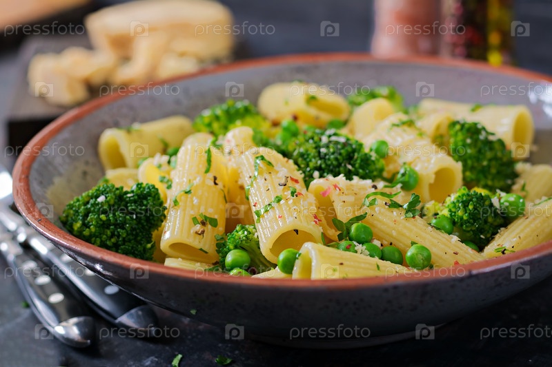 Паста ригатони с брокколи и зеленым горохом Веганское меню Диетическая еда