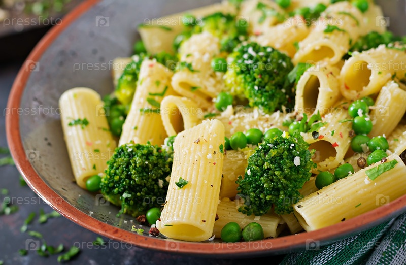 Паста ригатони с брокколи и зеленым горохом Веганское меню Диетическая еда