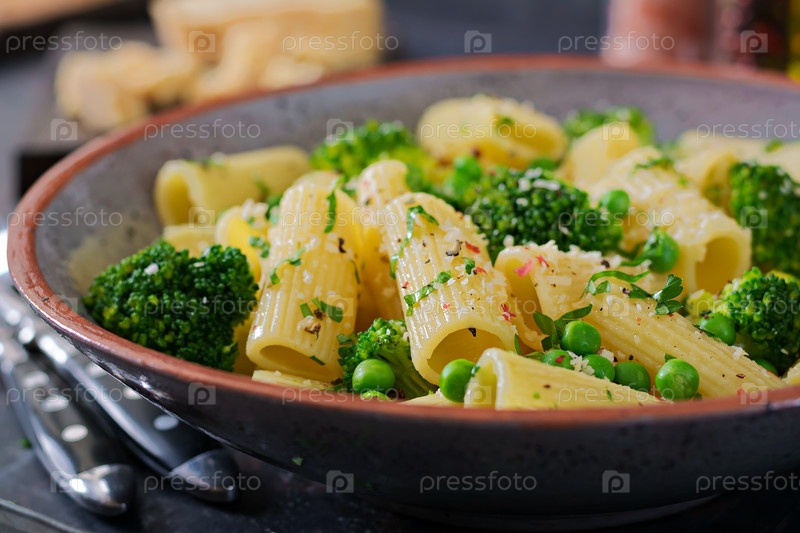 Паста ригатони с брокколи и зеленым горохом Веганское меню Диетическая еда