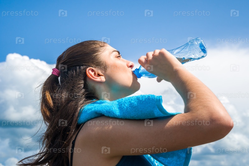 Прекрасная девушка пьет воду
