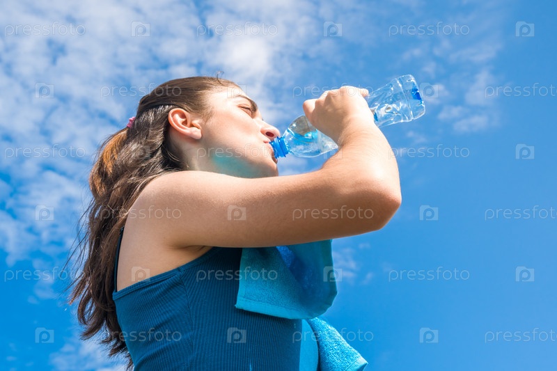 Прекрасная девушка пьет воду