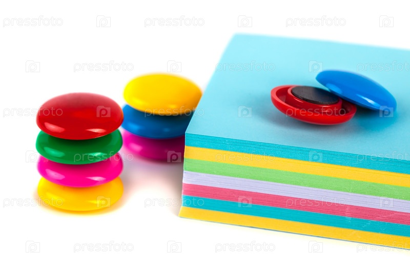 Красочные магниты - держатели и бумаги на белом фоне