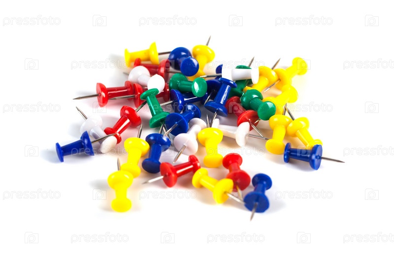 Канцелярские кнопки на белом фоне