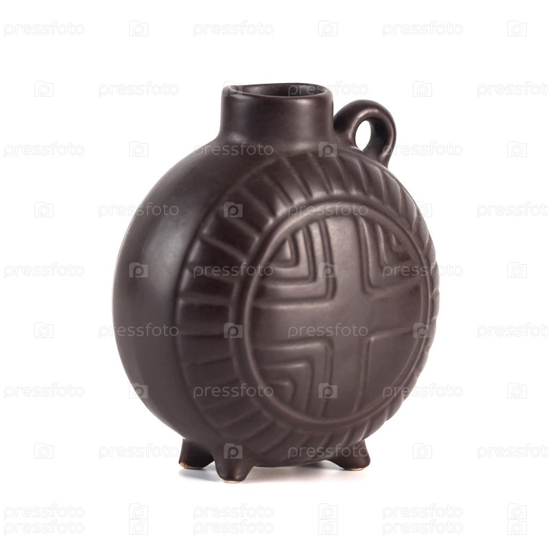 Традиционная грузинская керамическая посуда (шиншиллы) для вина на белом фоне