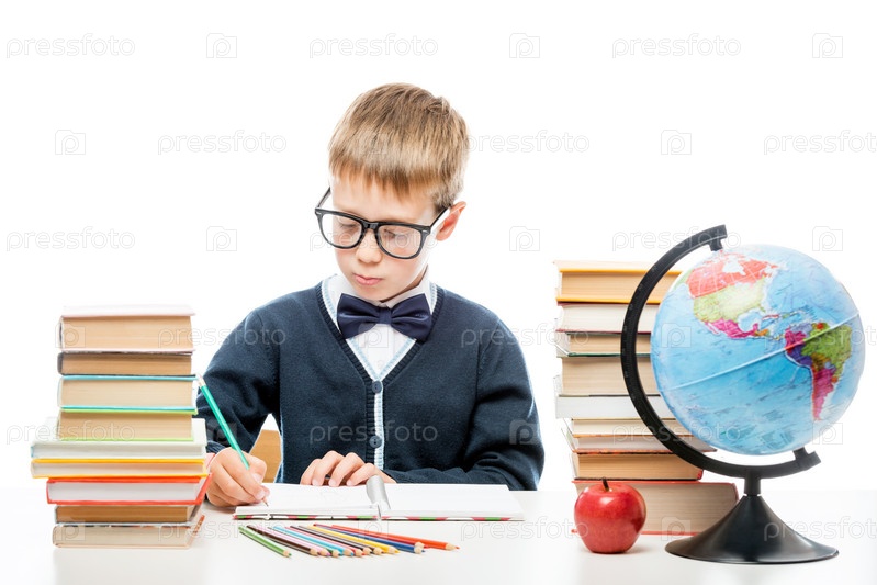 Мальчик студент за столом
