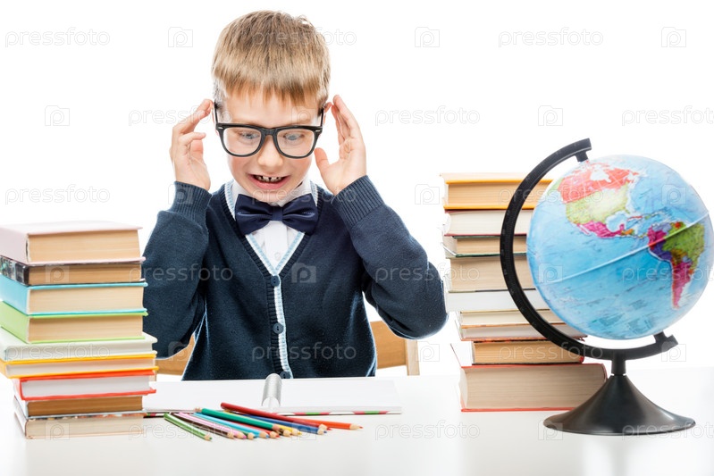 Мальчик студент за столом