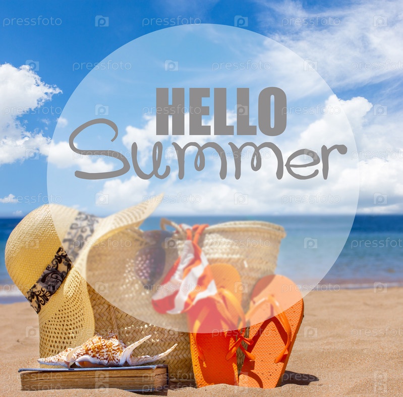 Аксессуары на песчаном пляже в соломенной сумке