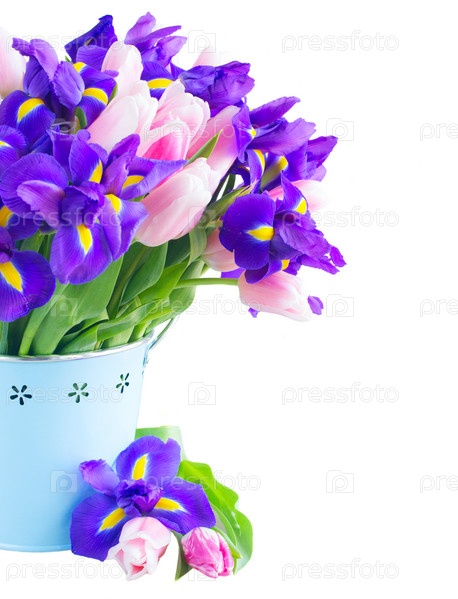 Синие ирисы и тюльпаны