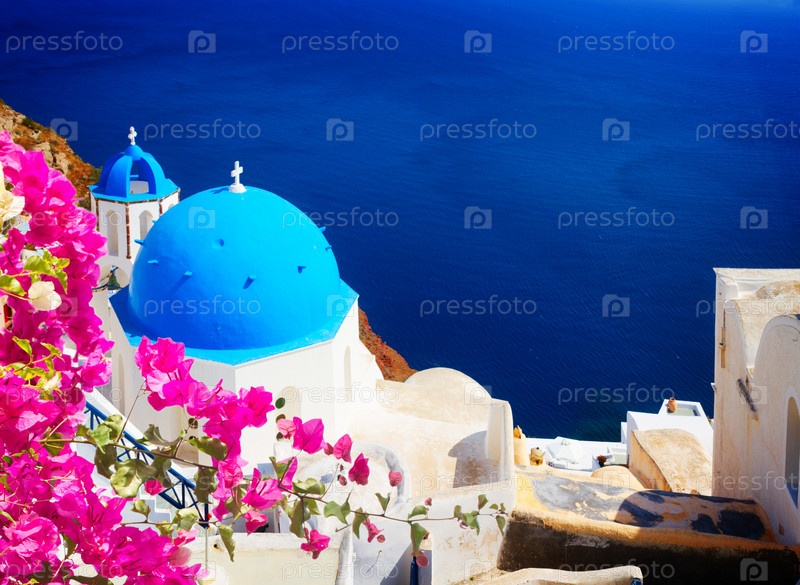Традиционный синий купол с видом на море, Санторини