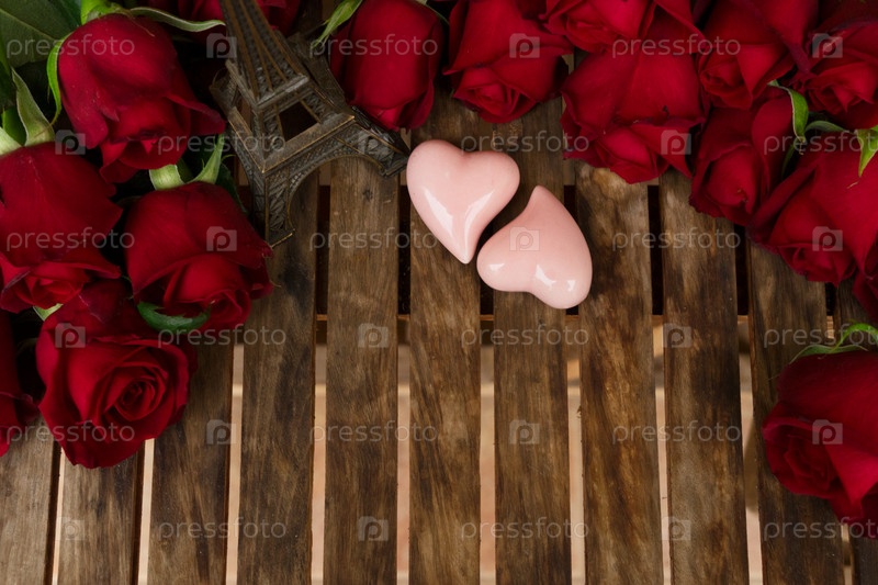 Темно-красные розы на столе
