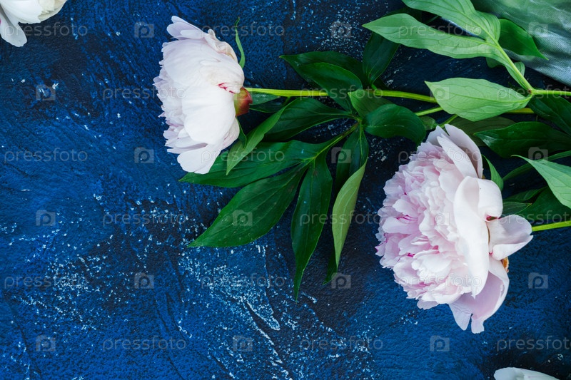 Свежие пионы на синем