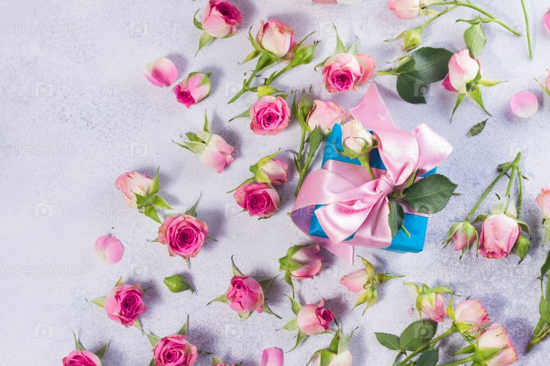 Подарочная коробка с атласным бантом и цветами