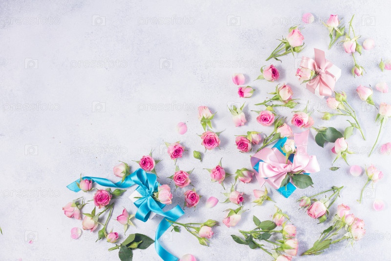 Подарочная коробка с атласным бантом и цветами