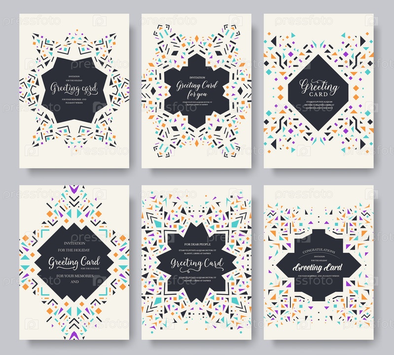 Геометрический абстрактный векторный набор карточек для брошюр. шаблон этнического стиля flyear, журналов, плакатов, обложки книг, баннеров. Active lifestyle invitation concept background. Layout illustration modern page