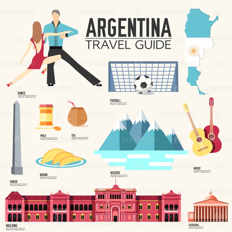 Страна Аргентина путешествие отпускное руководство по товарам, местам и особенностям. Набор архитектуры, моды, людей, предметов или концепции фона природы. Инфографический шаблон дизайна для веб-сайта и мобильных устройств