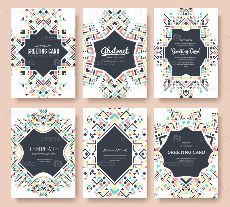 Геометрический абстрактный векторный набор карточек для брошюр. шаблон этнического стиля flyear, журналов, плакатов, обложки книг, баннеров. Active lifestyle invitation concept background. Layout illustration modern page