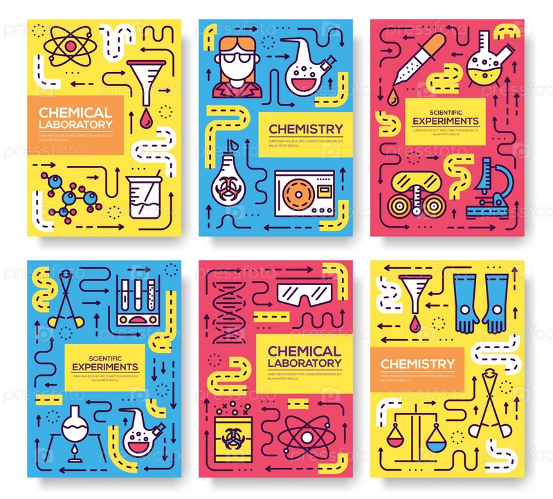 Biohazard chemists thin line brochure карточный набор. Шаблон лаборатории химии flyear, журналов, плакатов, обложки книг, баннеров. Ученый рабочее место конспект приглашения концепция фона. Качество оформления