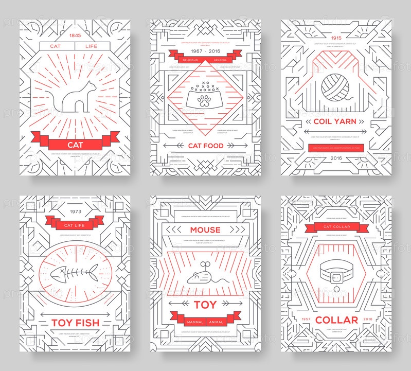 Породные кошки тонколинейный набор карточек брошюры. Животное традиционный шаблон flyear, журналы, плакаты, обложки книг, баннеры. котята контур приглашения концепция фона. Качество оформления современных страниц