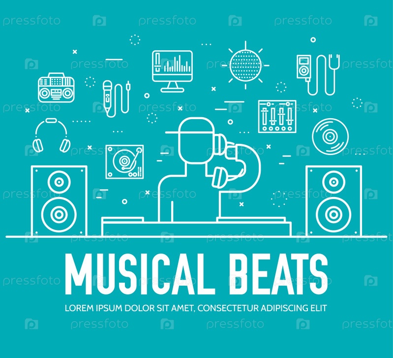 Тонкие линии иконы сотрудников диджея и любого набора оборудования
