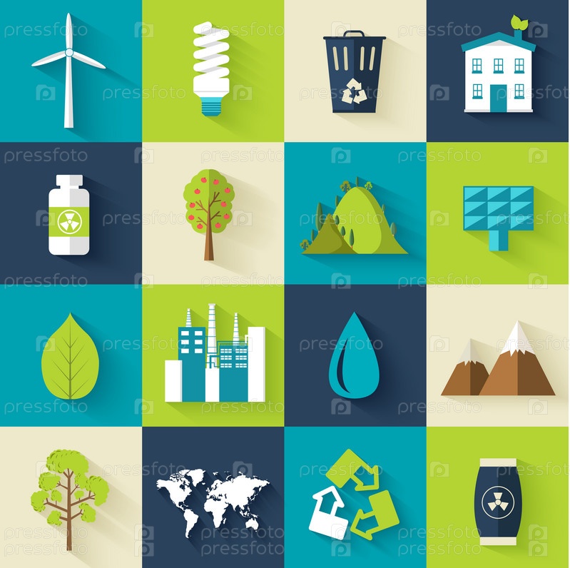 Набор экологических плоских икон иллюстрационная концепция