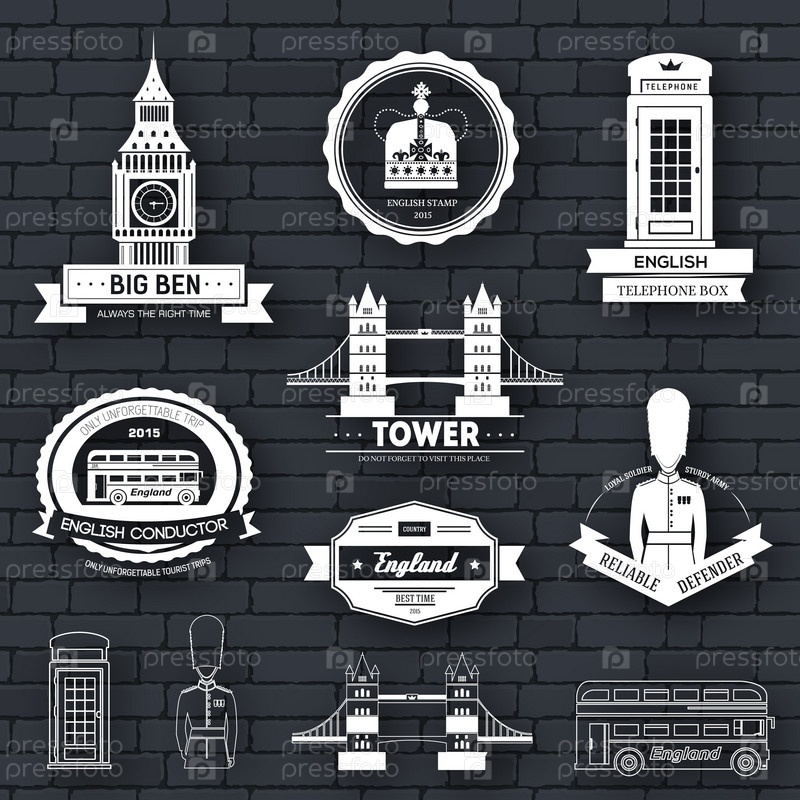 Шаблон этикетки Country England элемента эмблемы для вашего продукта или дизайна, веб- и мобильных приложений с текстом. векторная иллюстрация с тонкими линиями изолированных значков на символе штампа