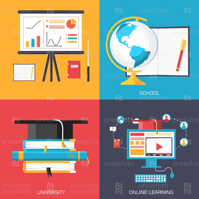 Дистанционное образование, онлайн и академическая школа вариации концепции фоны в ретро плоском стиле дизайна