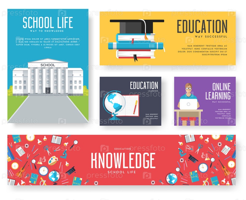 Назад в школу набор карт иллюстрации дизайн брошюры