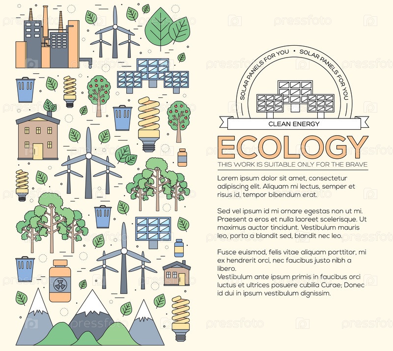 Тонкая линия природные ресурсы современная иллюстрационная концепция.Инфографический путь от экологии к чистой энергии