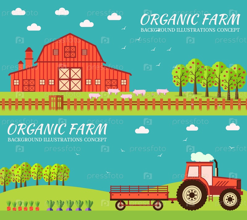 Flat farm in village set sprites and tile sets. инструменты, цветы, овощи, фрукты, сена, здание фермы, животные, трактор, инструменты, одежда. векторные иллюстрации дизайн баннеров концепция