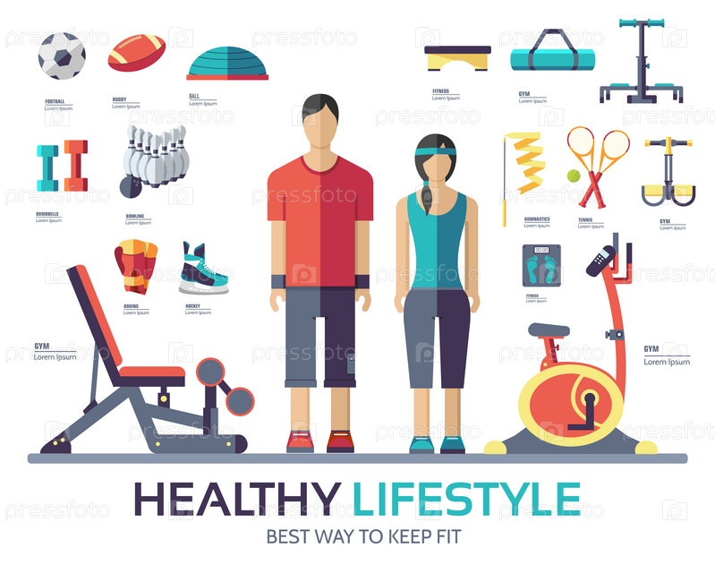 Спортивный образ жизни инфографическая устройство оборудование. фитнес икона концепция