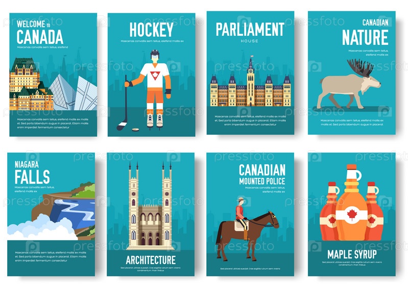 Набор концепции путешествия по Канаде. Традиционное искусство, журнал, книга, плакат, абстракт, баннеры, элемент. Векторная декоративная этническая открытка поздравления или дизайн приглашения фоном