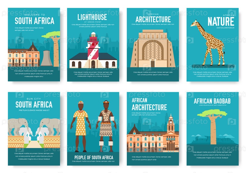 Набор южноафриканских деревенских украшений концепция путешествия. Традиционное искусство, журнал, книга, плакат, абстракт, баннеры, элемент. Векторная декоративная этническая открытка поздравлений или дизайн приглашения фоном