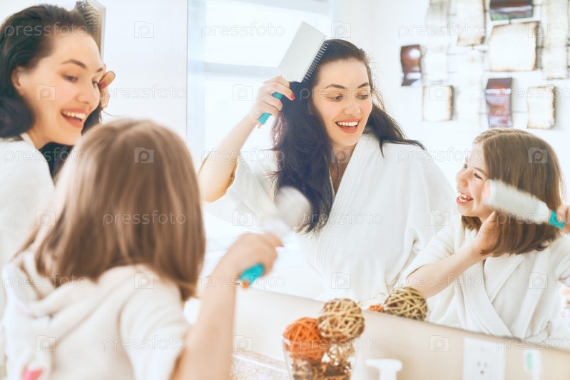 Мать и дочь расчесывают волосы