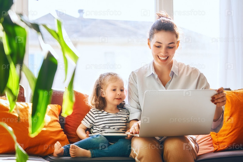 Мама и ребенок с ноутбуком