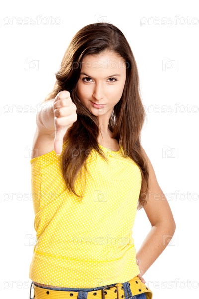 Молодая девушка с опущенными большими пальцами