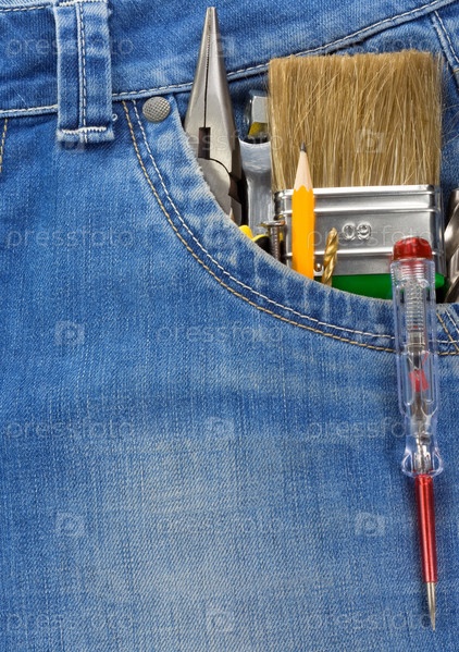 Инструменты и инструменты в синих джинсах