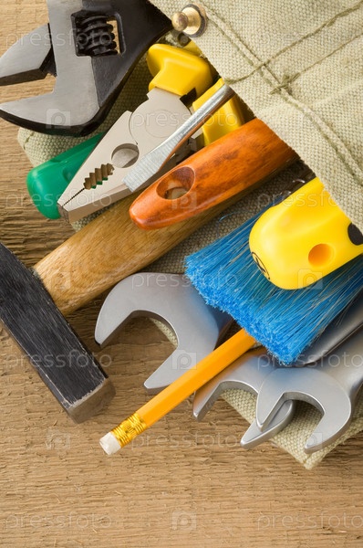 Инструменты в поясной сумке на дереве
