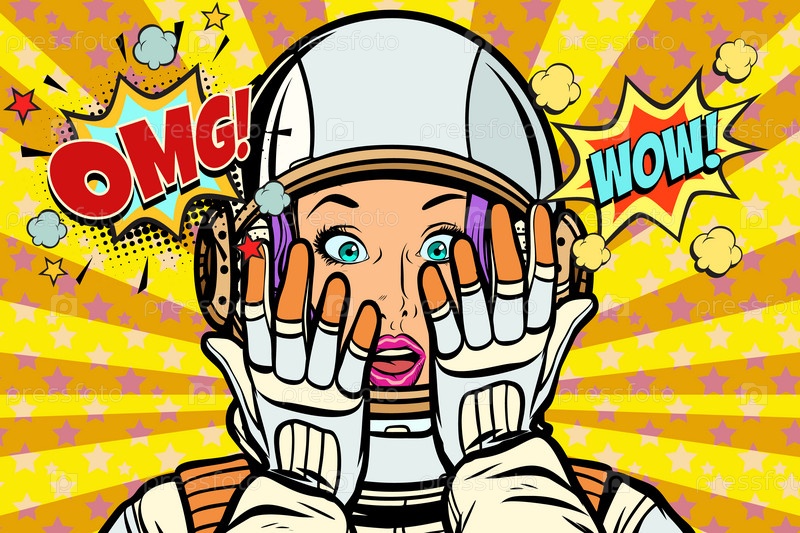 OMG вау поп-арт женщина астронавт