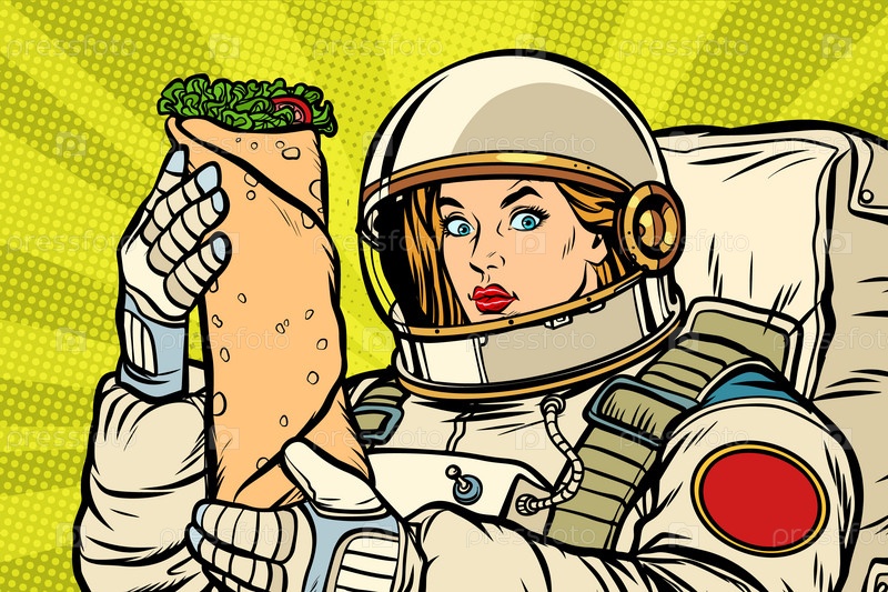 Голодная женщина-астронавт с шаварма кебабом