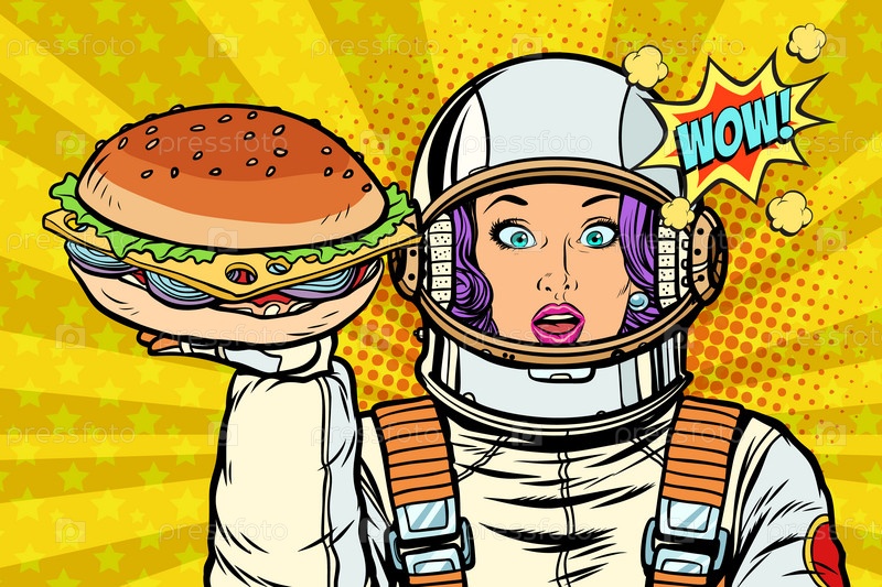 Голодная женщина-астронавт с бургером