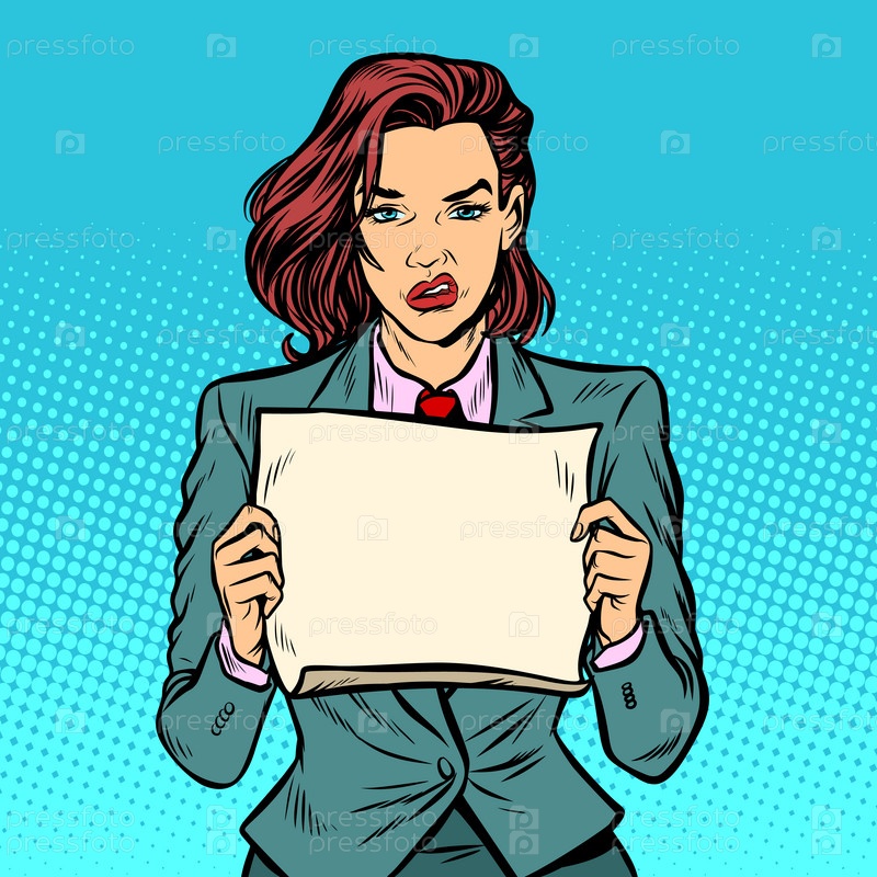 Женщина-протестник, пустая доска, серьезное лицо
