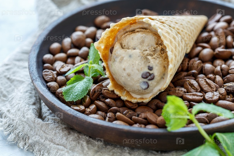 Вафлевый конус с кофе мороженым