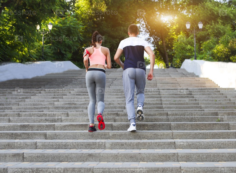 Пара бегает на улице, бегуны тренируются на открытом воздухе и работают в парке