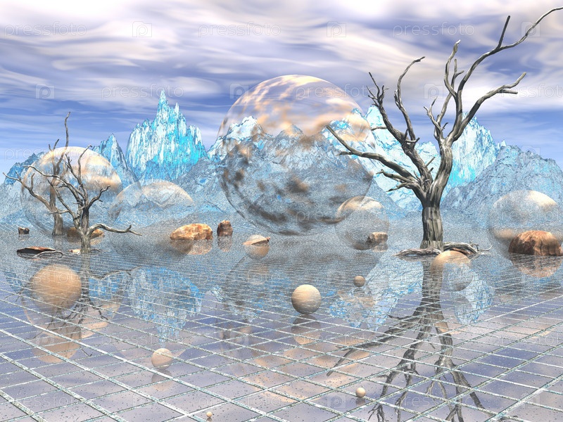 Фантастический абстрактный пейзаж с сферами