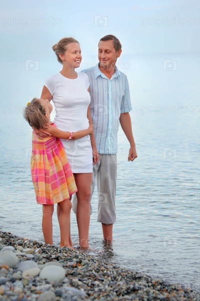 Счастливое семейство с дочкой на берегу