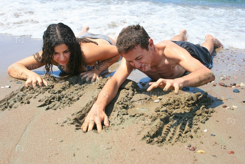 Подростки ползущие от моря по песку