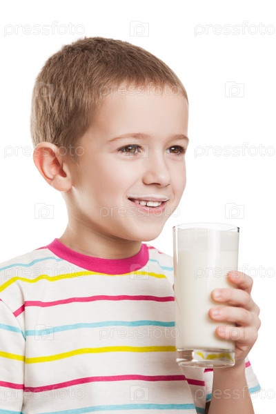 Улыбающийся ребенок пьет молоко